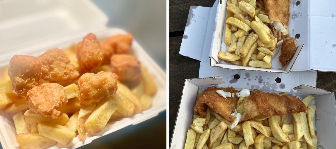 A proper fish n chip shop! All food is cooked fresh while you wait or can be ordered in advance and they even do deliveries. They can take card payments but prefer cash because the payment provider for cards charges.